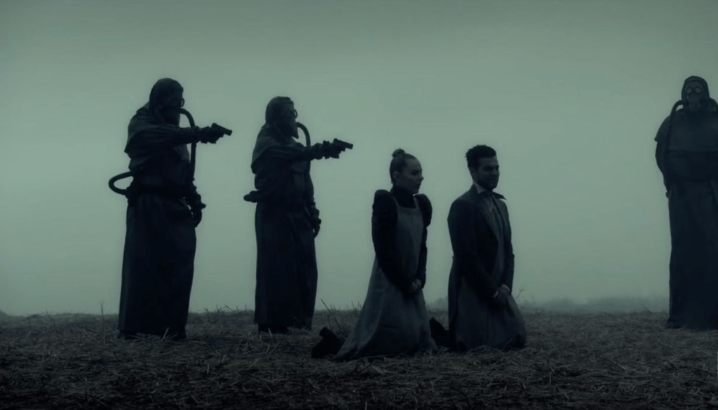 Tous ces éléments d’extérieurs ressortent d’autant plus que l’on passe la majeure partie de cette timeline dans un bunker aux couloirs qui se ressemblent, et à la faible luminosité. Un décor qui avait été utilisé à merveille dans 10 Cloverfield Lane et j’en attendais au moins autant dans AHS. Mais la narration reposant principalement sur les flashbacks, d’autres intrigues prennent donc place avant cette fameuse apocalypse. Ce titre sonnait comme une potentielle apothéose, mais il n’en est rien: on passe la majeure partie du temps sur les préparatifs menant à l’avènement de l’antéchrist. Décevant.