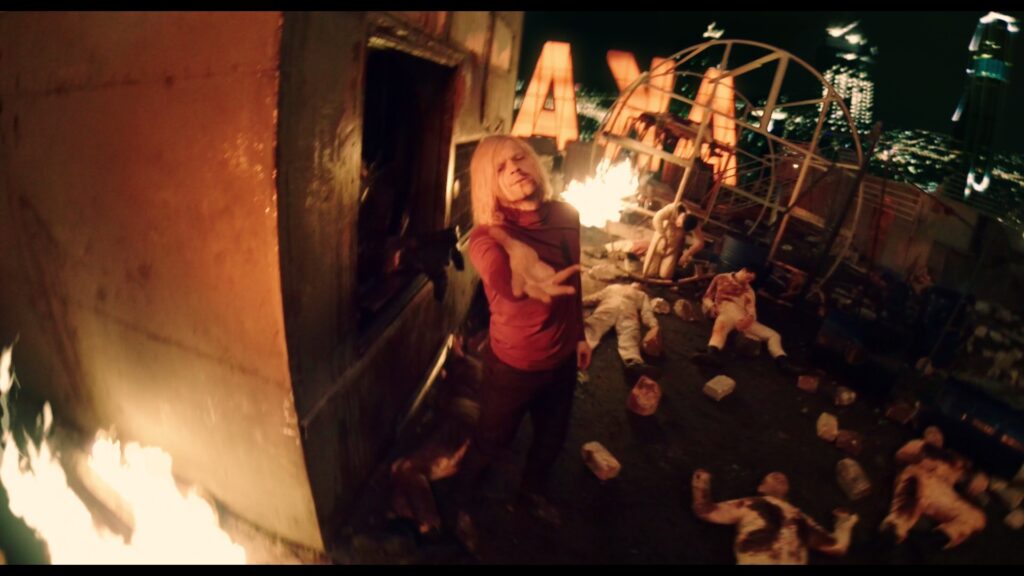 On suit donc Henry, littéralement dans le feu de l’action face à Akan, un méchant au physique de George McFly avec des pouvoirs télékinésiques. Dans sa quête pour retrouver sa femme, il sera aidé par Jimmy et ses doubles, tous interprétés par Sharlto Copley. Cette histoire, sorte de croisement entre Shoot’em up et Bloodshot, ne brille pas par son originalité, mais c’est dans son exécution qu’elle s’avère brillante. Passé un générique plutôt cool, on vit l’histoire à travers les yeux d’Henry comme si il portait une caméra cachée.