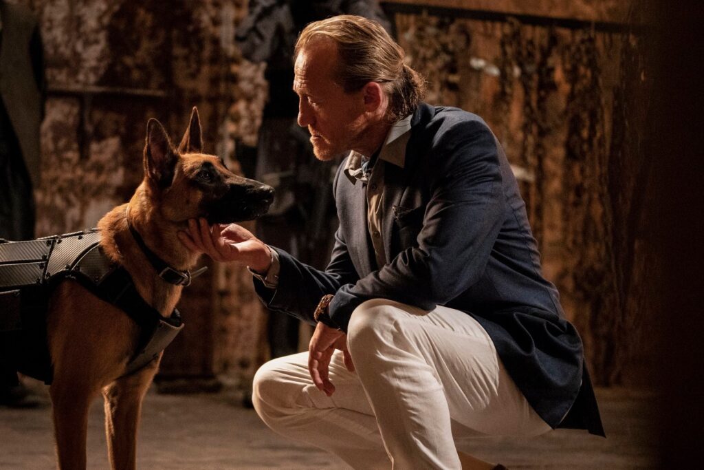 Gérante du Continental de cette ville, elle mettra à l’épreuve le costume par balle de son invité, avant de s’asseoir pour discuter. C’est là que les rapports de force s’inversent par rapport aux précédents opus. Tel le karma, John se retrouvera dans la même position que Santino d’Antonio, à qui il doit sa situation actuelle de fugitif, en proposant à Sofia d’honorer sa dette de sang. Ce qu’elle acceptera à contrecœur. Ce personnage, joué par Halle Berry, est non seulement une sorte de John Wick au féminin, chiens inclus, qu’une idée du tournant que pourrait prendre l’arc narratif de John dans les opus suivants.