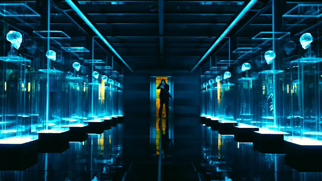 Une force d’opposition redoutable, mais dont le sens de l’honneur va venir rythmer les combats. Un respect pour l’adversaire qui est bien supérieur aux oeuvres d’art qui sont exposées dans cette salle. Ce décor rappelle d’ailleurs celui de la galerie d’art, et ses multiples miroirs, dans lequel prenait place le dernier acte de John Wick chapitre 2. Mais la collection personnelle du Continental est bien plus ésotérique puisqu’elle contient rien de moins que les fameux crânes de cristal. De quoi rajouter à la mythologie de cet univers qui se présente pourtant comme un simple film d’action.