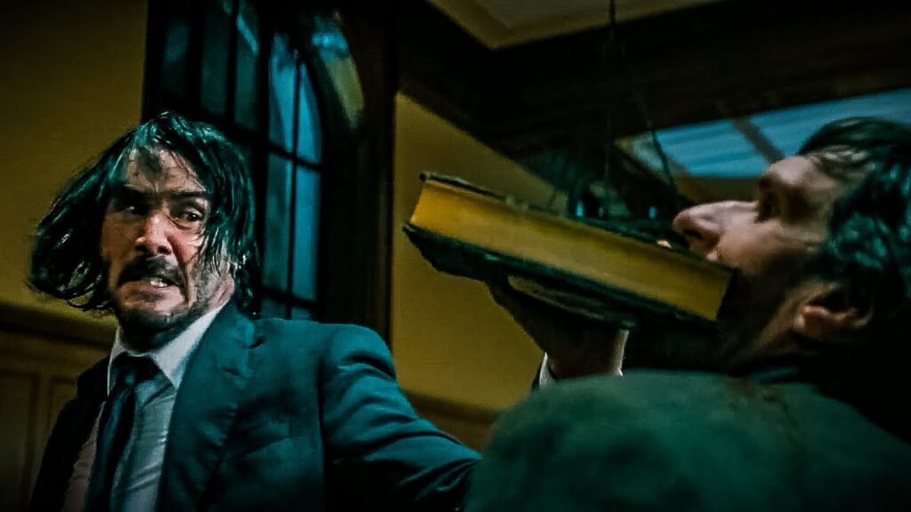 Même le chauffeur de taxi à qui il confiera son chien se révélera en être un. Bloqué dans les embouteillages, il continuera sa route à pieds sous une pluie battante avant de trouver refuge à la bibliothèque municipale. Ce temple de la connaissance se transformera alors en temple des arts martiaux lorsqu’un tueur se présentera à lui avant la fin du compte à rebours sonnant le début de la chasse à l’homme. John lui fera avaler son bulletin de naissance sous la forme d’un livre qui lui brisera la mâchoire. Après s’être fait connaitre en tuant avec un simple crayon, Baba Yaga confirme sa réputation en innovant dans ses mises à mort.