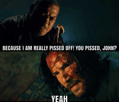 Si un cliffhanger se définit par une personne suspendue au bord d’une falaise, ici il n’y a aucun doute quant au fait que John est étalé dans la ruelle en contrebas. On pourrait alors croire qu’il s’agissait d’une manoeuvre de Winston afin de faire passer pour mort son ami, mais cette mise en scène périlleuse à tout d’un revirement de situation. Une trahison. La véritable fin en suspens viendra d’ailleurs confirmer la survie de John, et sa vengeance prochaine. Mal en point face au Bowery King qui l’a rapatrié dans les bas-fonds, les yeux injectés de sang, il n’a jamais autant eu l’air d’un croquemitaine. Une séquence qui aurait pu faire l’objet d’une scène post-générique afin de laisser planer le doute sur son sort.