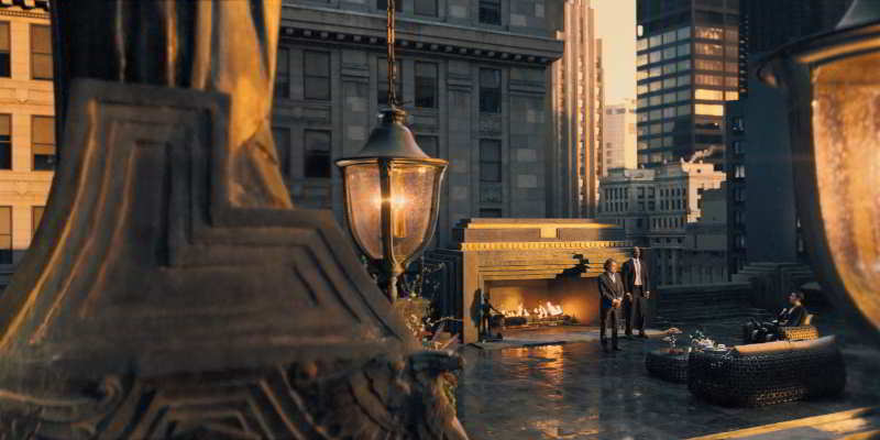 Mais à la comédie succédera la tragédie lorsque John Wick se rendra sur le toit du bâtiment. Un cadre surréaliste, aménagé d’une cheminée et d’un canapé, avec un vis-à-vis total sur des affaires pourtant ultra-secrètes. Comme si cet endroit était pourvu de murs invisibles. Mais ce n’est pas ce qui empêchera John de faire une chute vertigineuse sous le feu nourri de Winston. Celui-ci s’est vu offert de garder ses fonctions au sein du Continental par l’Adjudicatrice, et sa première action aura été de régler le problème John Wick.